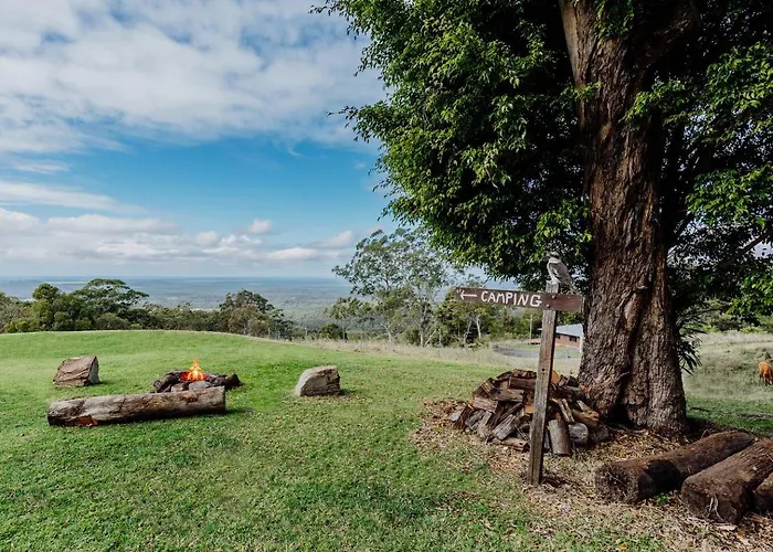 Acreage Property, Pet Friendly, Outdoor Campfire villa offers an equipped kitchen with a refrigerator, a stove top, and kitchenware. Sunshine Coast airport is 45 km away from the Bald Knob accommodation.
